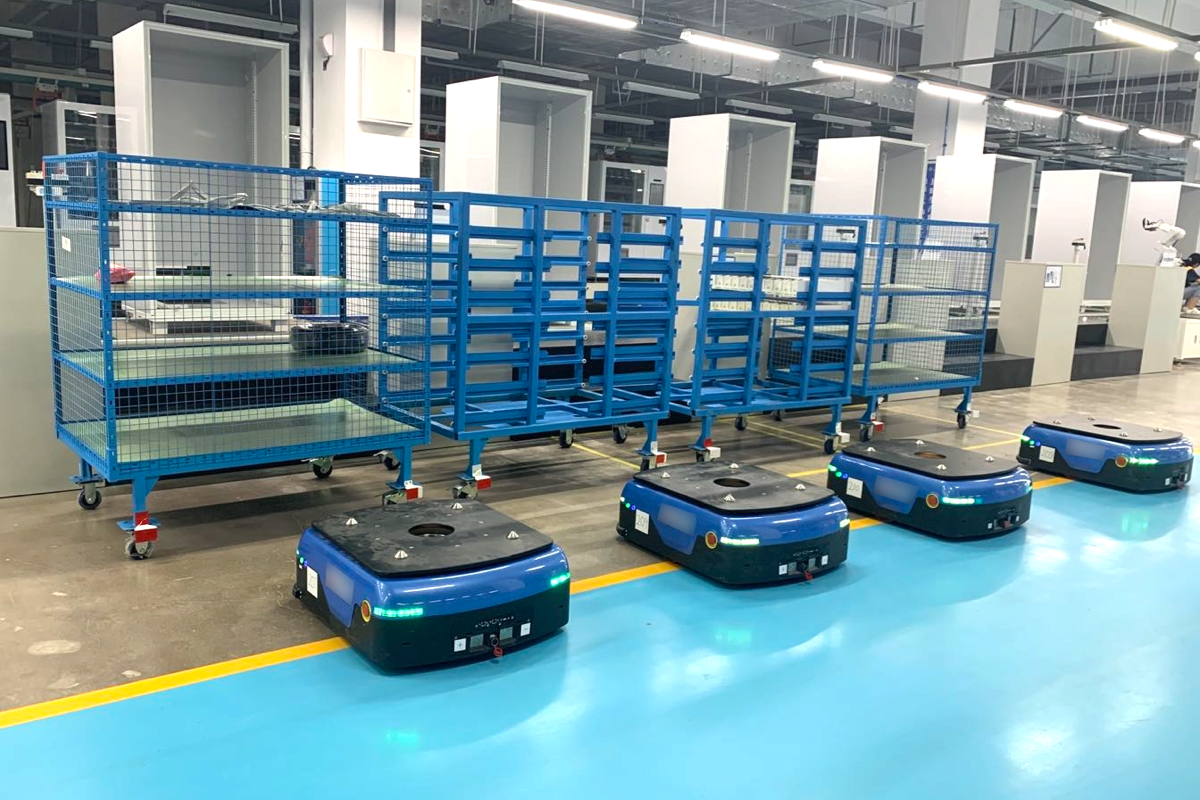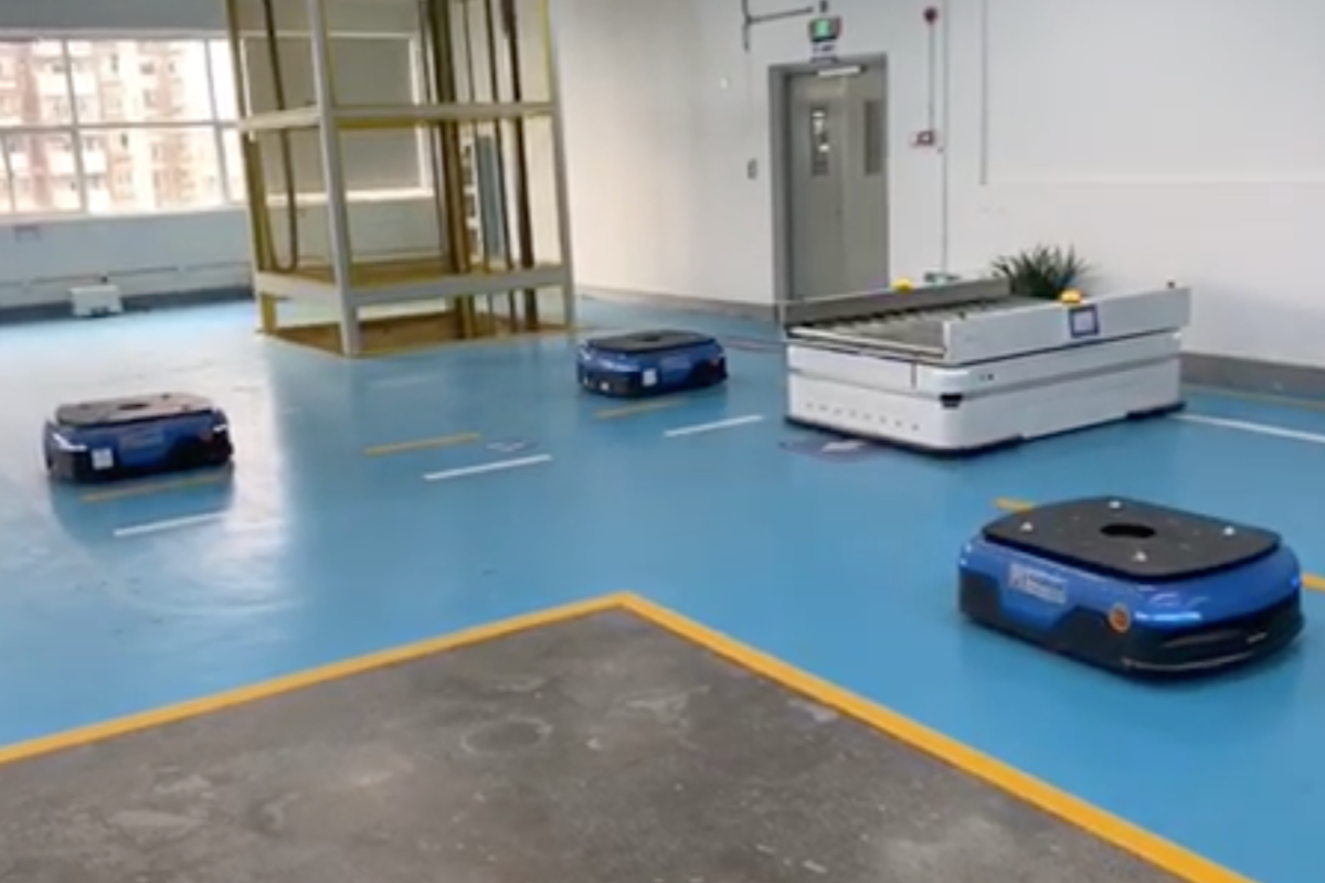 壹悟科技在本项目中应用了自主研发的平台式调度系统,同场调度三种不同类型、不同导航方式的设备,来满足不同业务流程的需求。通过灵活的系统配置工具来完成客户业务流程的编排以及跟客户业务MES系统的对接,并且可以根据客户业务需求的变化来灵活调整。系统整体鲁棒性高,单点故障不会影响全局运行效率。